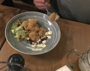 Výběr předkrmů i pokrmů byl dobrý. Obligátní vývar s nudlemi i kulajda, křídla, Gynkův tatarák … Ale neobvyklé krevety v těstíčku a i tvarůžky v košilce mne zaujaly. Burger byl na slušné ůrovni.