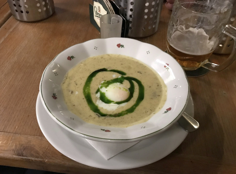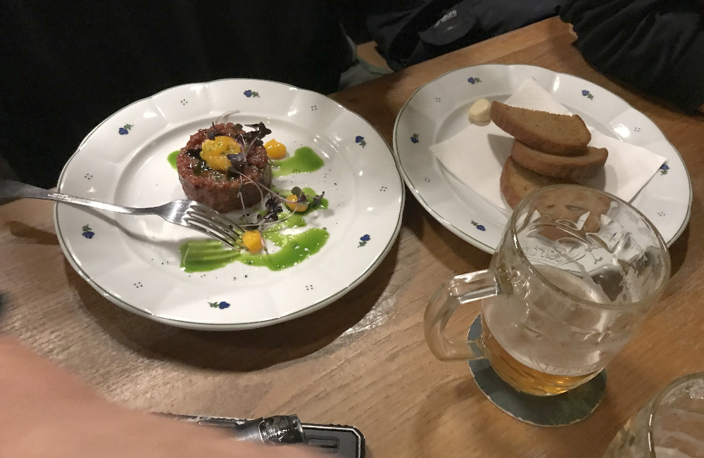 Výběr předkrmů i pokrmů byl dobrý. Obligátní vývar s nudlemi i kulajda, křídla, Gynkův tatarák … Ale neobvyklé krevety v těstíčku a i tvarůžky v košilce mne zaujaly. Burger byl na slušné ůrovni.