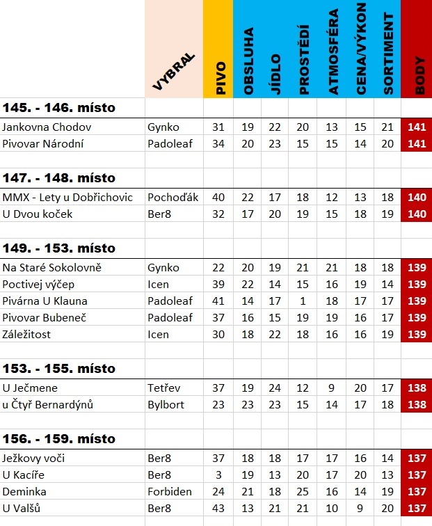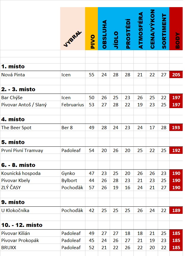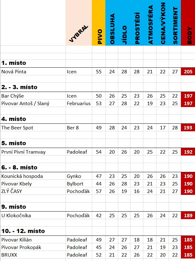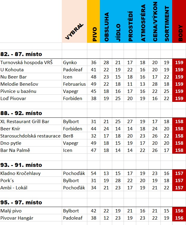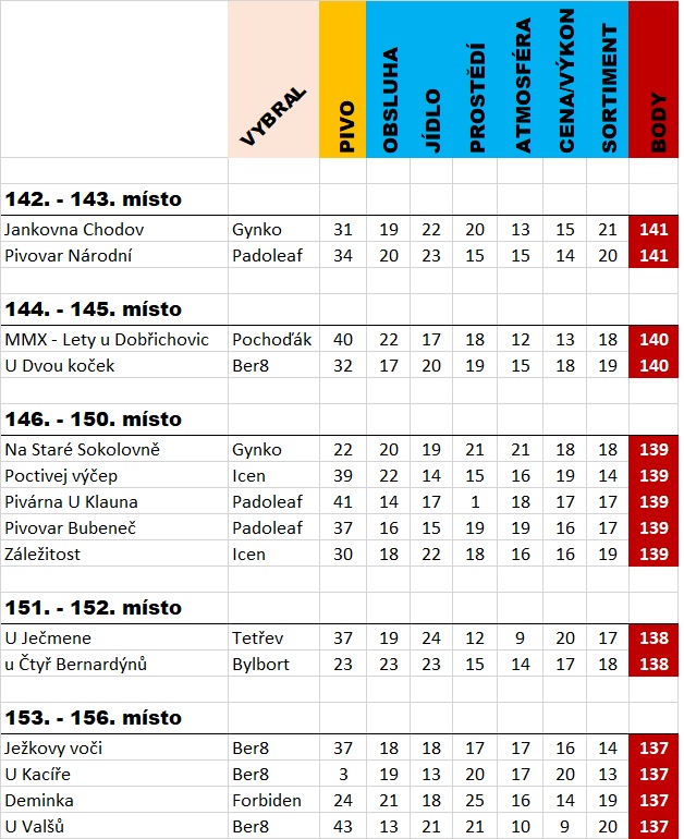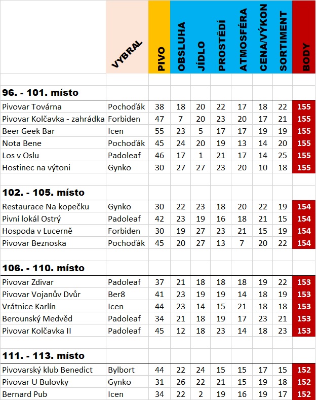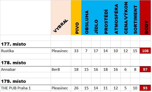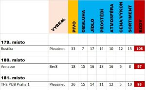 Gynko napsal: "No... Ber8 nejprave narušil atmosféru snahou o plácání servírky, a pak dal kvůli tomu v hodnocení atmosféry jako jedinej dvojku, zatímco ostatníí 4-5. To je chucpe!!..." Ber 8 napsal: "S odstupem pár let lze říci, že si i tuhle vysoko nasazenou laťku udrželi. U piva to ani tak nepřekvapuje, to se od Pavla čeká. Ale u jídla by to člověk na sídlišti fakt nečekal. Už se těším, až skonč..." Gynko napsal: "Atmosféra 2 až 4? Dyk tam bylo narváno. Bylbo, kams dal voči, uši a hlavu?..." Gynko napsal: "Nicméně vrcholem konvektiklu bylo zjištění Bervosmičky, že jde letos do důchodu. Tolik štěstí v očích starce jsem nikdy neviděl. A když Bylbo sdělil, že to má za víc než dvacet let... tolik radosti v..." Ber 8 napsal: "Pro mne to je skvělá hospoda, která by si možná zasloužila místo v první patnáctce. Výborný výběr výborných piv, to především. Holt se ta naše kalibrace asi fakt mění. A taky hraje roli cosi jako opin..."
