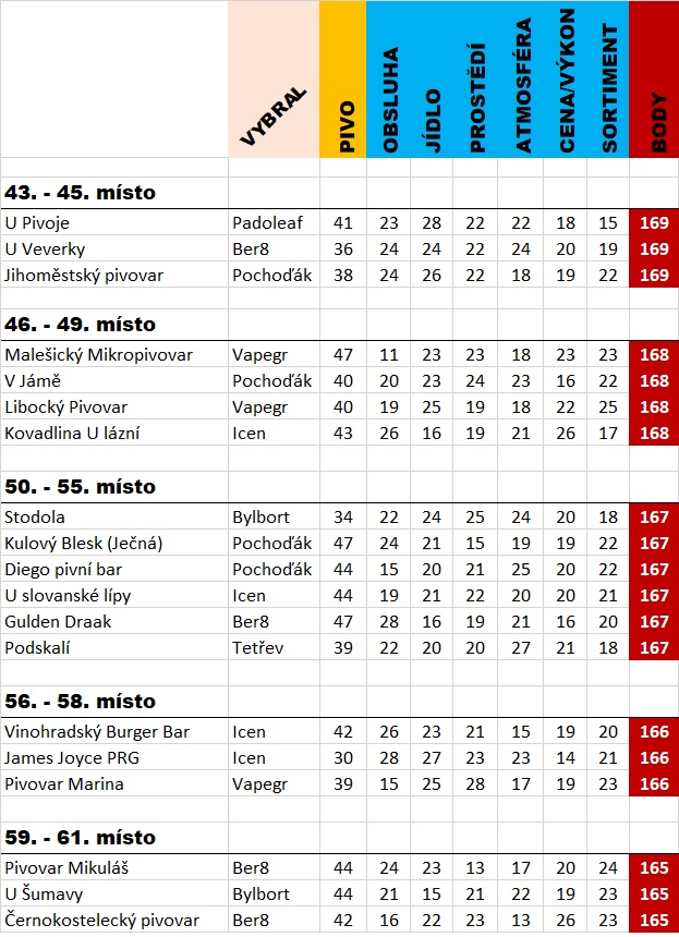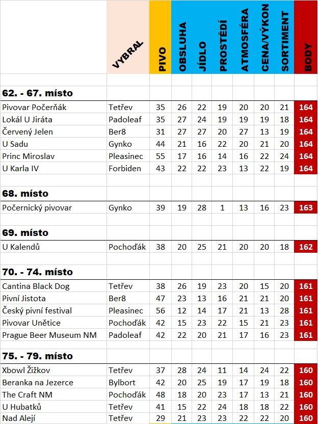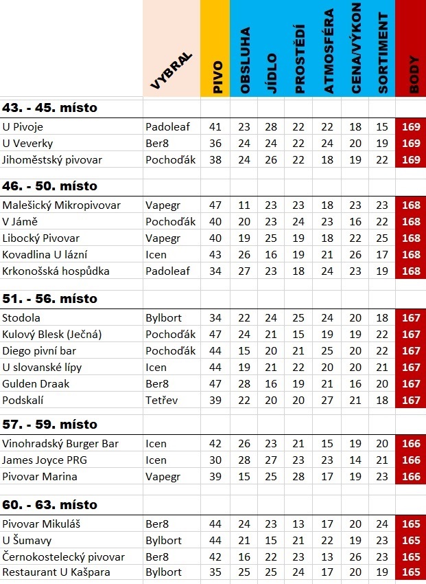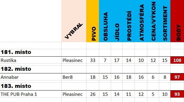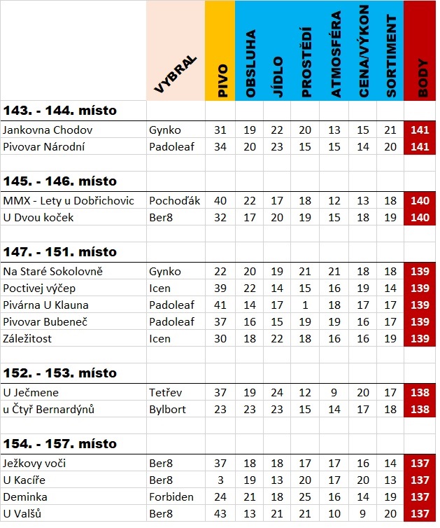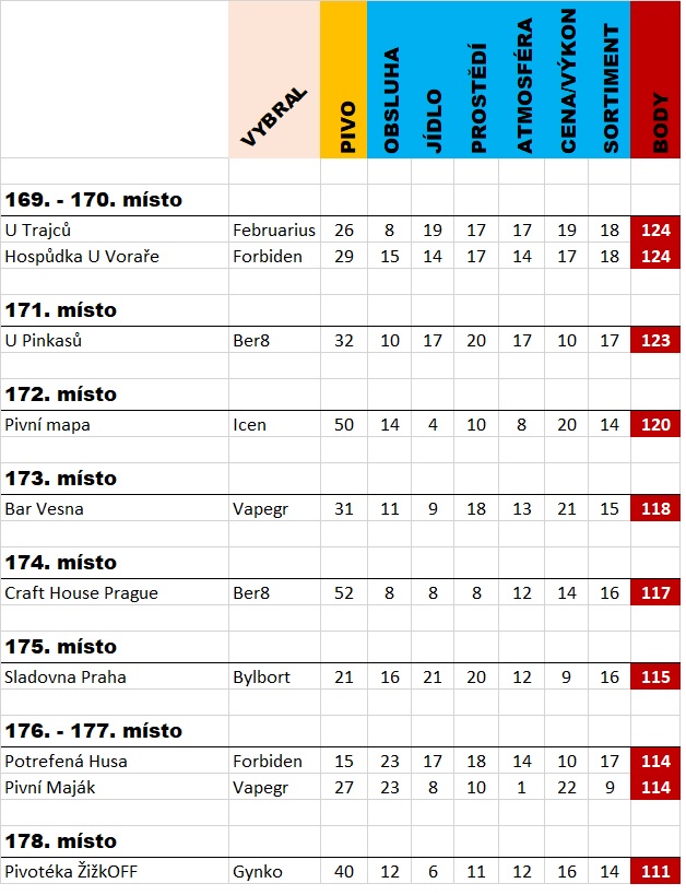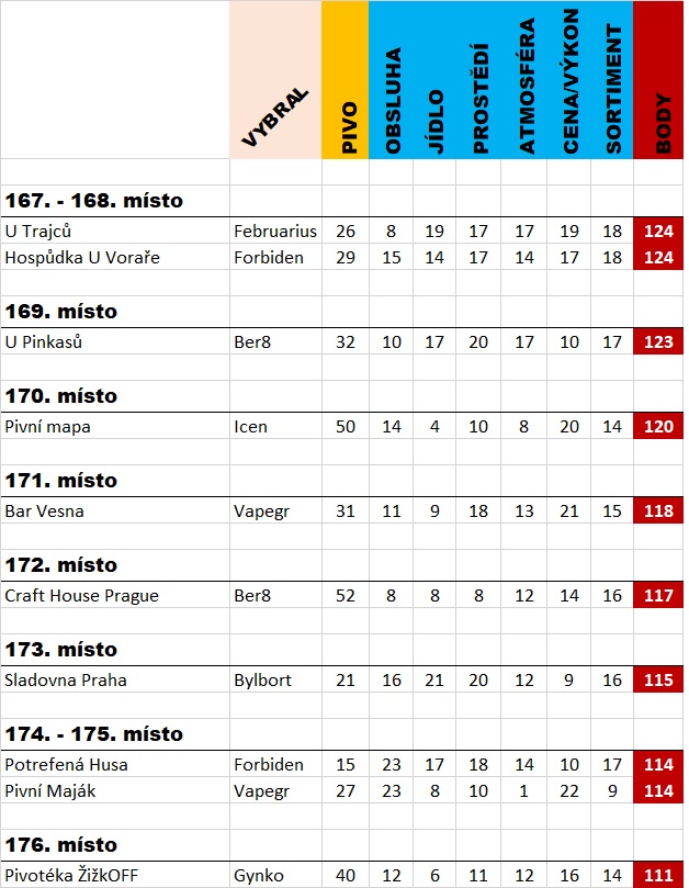 Gynko napsal: "No... Ber8 nejprave narušil atmosféru snahou o plácání servírky, a pak dal kvůli tomu v hodnocení atmosféry jako jedinej dvojku, zatímco ostatníí 4-5. To je chucpe!!..." Ber 8 napsal: "S odstupem pár let lze říci, že si i tuhle vysoko nasazenou laťku udrželi. U piva to ani tak nepřekvapuje, to se od Pavla čeká. Ale u jídla by to člověk na sídlišti fakt nečekal. Už se těším, až skonč..." Gynko napsal: "Atmosféra 2 až 4? Dyk tam bylo narváno. Bylbo, kams dal voči, uši a hlavu?..." Gynko napsal: "Nicméně vrcholem konvektiklu bylo zjištění Bervosmičky, že jde letos do důchodu. Tolik štěstí v očích starce jsem nikdy neviděl. A když Bylbo sdělil, že to má za víc než dvacet let... tolik radosti v..." Ber 8 napsal: "Pro mne to je skvělá hospoda, která by si možná zasloužila místo v první patnáctce. Výborný výběr výborných piv, to především. Holt se ta naše kalibrace asi fakt mění. A taky hraje roli cosi jako opin..."